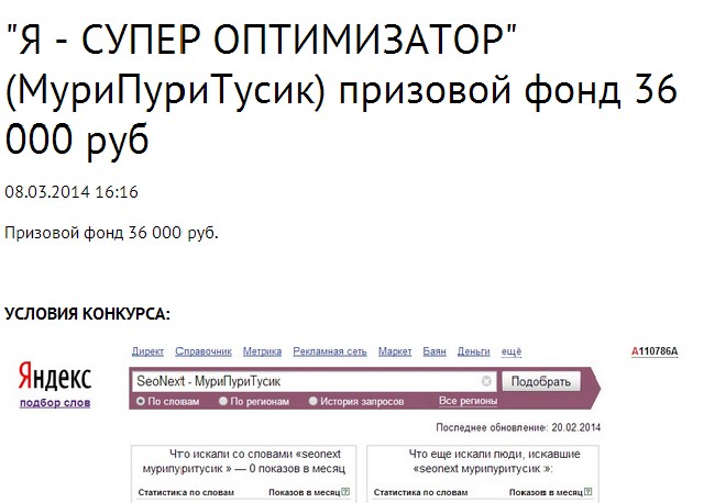 "Я - СУПЕР ОПТИМИЗАТОР" (МуриПуриТусик) призовой фонд 36 000 руб