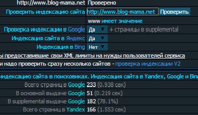 Не плохо? 2 недели сайту, а уже 166 страниц в поисковой выдаче Яндекса и 233 страницы в Гугл!